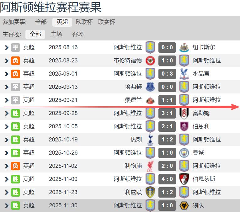 英超联赛竞争异常激烈,资金充裕且各队战术水平高超,任何球队都有可能击败对手。阿斯顿维拉本赛季开局5轮未尝胜绩,但随后8轮比赛中斩获21分,排名迅速攀升至前两名附近,展现出截然不同的两种状态,犹如冰火两重天。