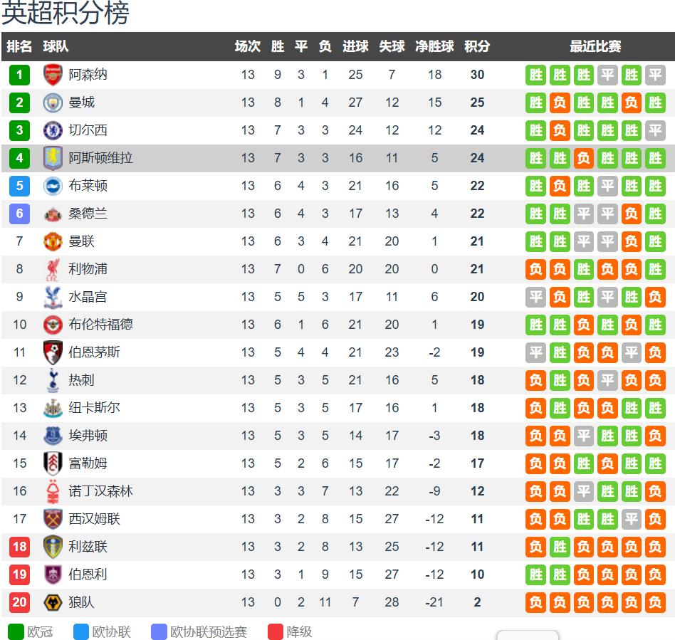 本赛季英超欧冠资格的争夺异常激烈,从第二名曼城到第八名利物浦之间的积分差距仅有4分,阿斯顿维拉依然是争夺欧冠席位的重要竞争者。